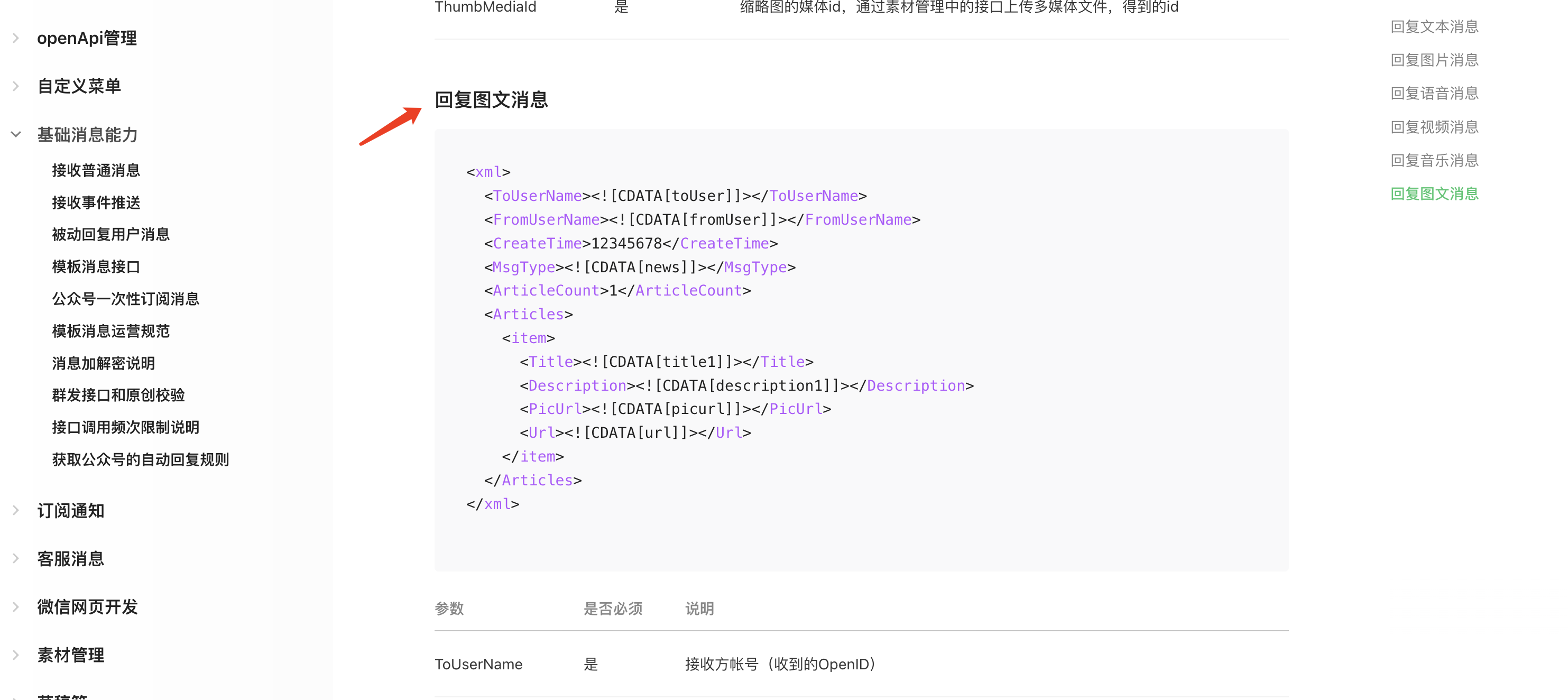 被动回复:https://developers.weixin.qq.com/doc/offiaccount/Message_Management/Passive_user_reply_message.html#%E5%9B%9E%E5%A4%8D%E5%9B%BE%E6%96%87%E6%B6%88%E6%81%AF