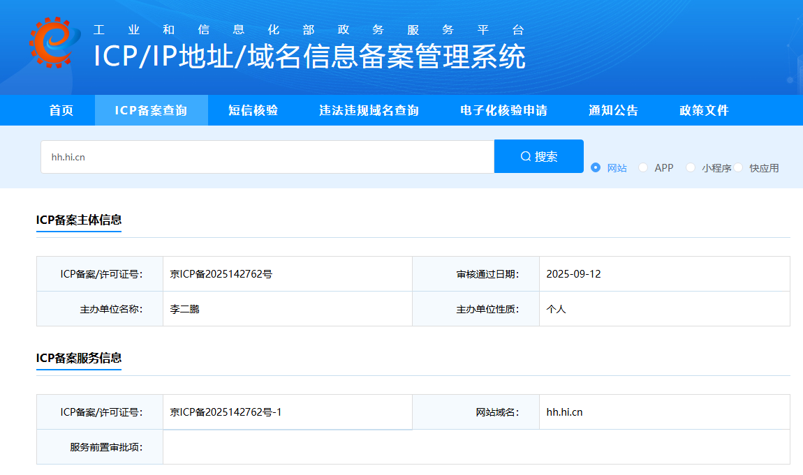 https://hh.hi.cn已备案,只是门户网站 提醒: