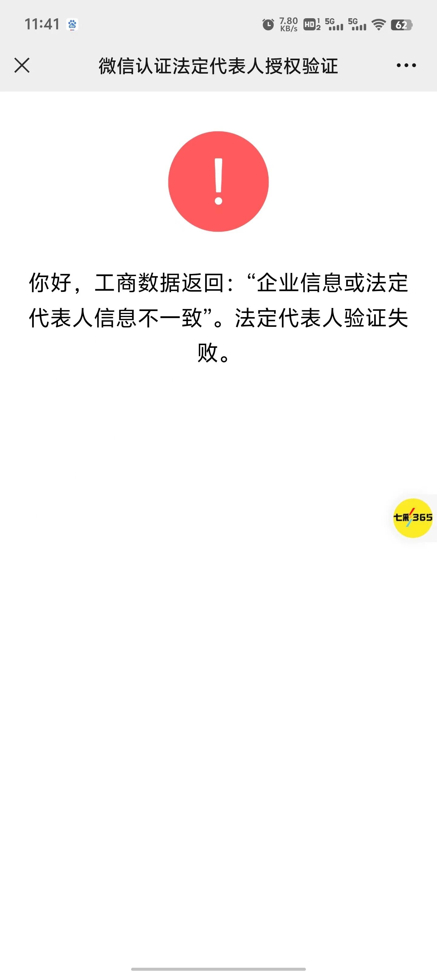 微信认证,法人认证提示企业或法定代表人信息不一致,