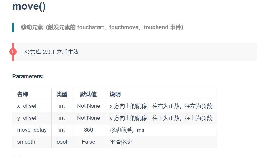 https://minitest.weixin.qq.com/#/minium/Python/api/Element?id=move