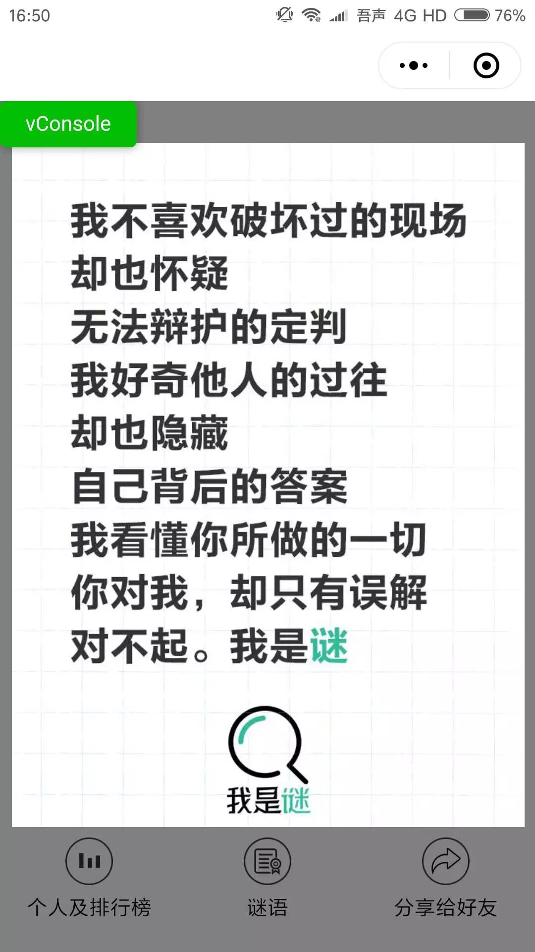 第一次更改就把【分享朋友圈】按钮换成了【谜语】按钮