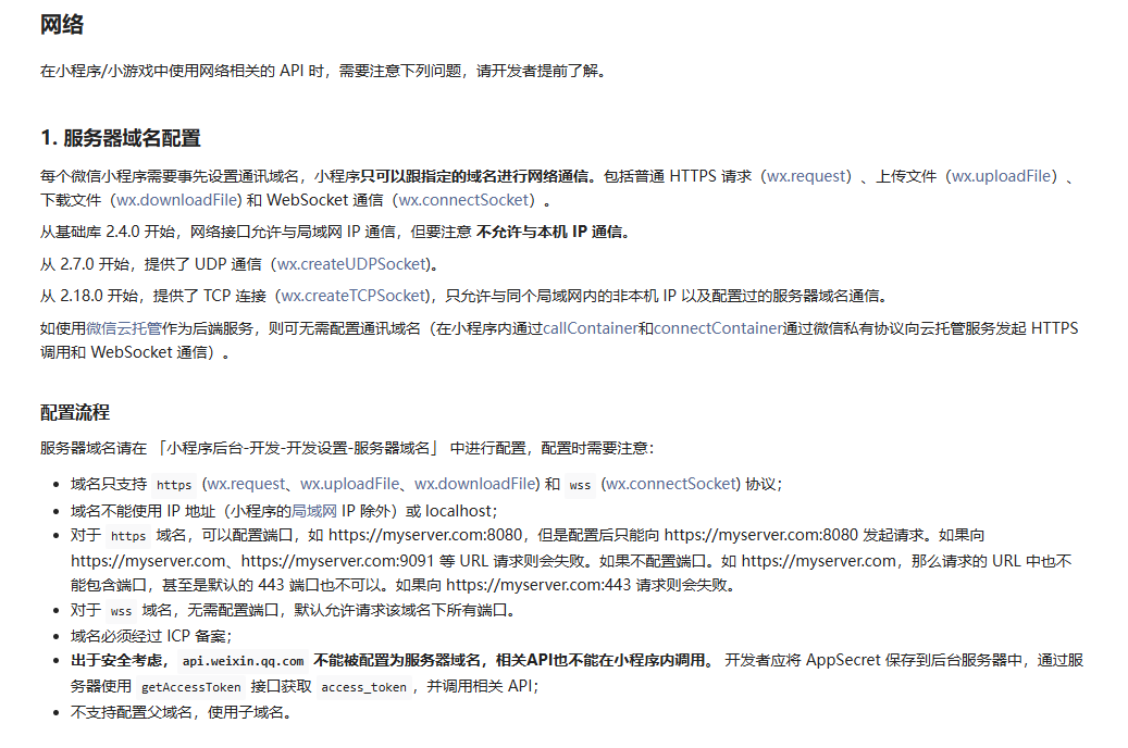 线上版本必须使用已备案的https域名,开发版、体验版可以打开调试模式暂时绕过域名校验,但是仅限于开发者、体验者需自行打开调试模式,其他用户不支持。