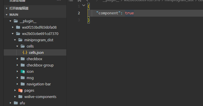message:Error: __plugin__/wx2b03c6e691cd7370/miniprogram_dist/cells/cells.js does not exists