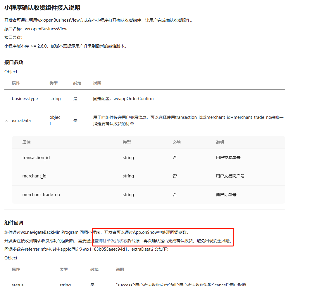 https://developers.weixin.qq.com/miniprogram/dev/platform-capabilities/business-capabilities/order-shipping/order-shipping.html#%E4%B8%89%E3%80%81%E6%9F%A5%E8%AF%A2%E8%AE%A2%E5%8D%95%E5%8F%91%E8%B4%A7%E7%8A%B6%E6%80%81