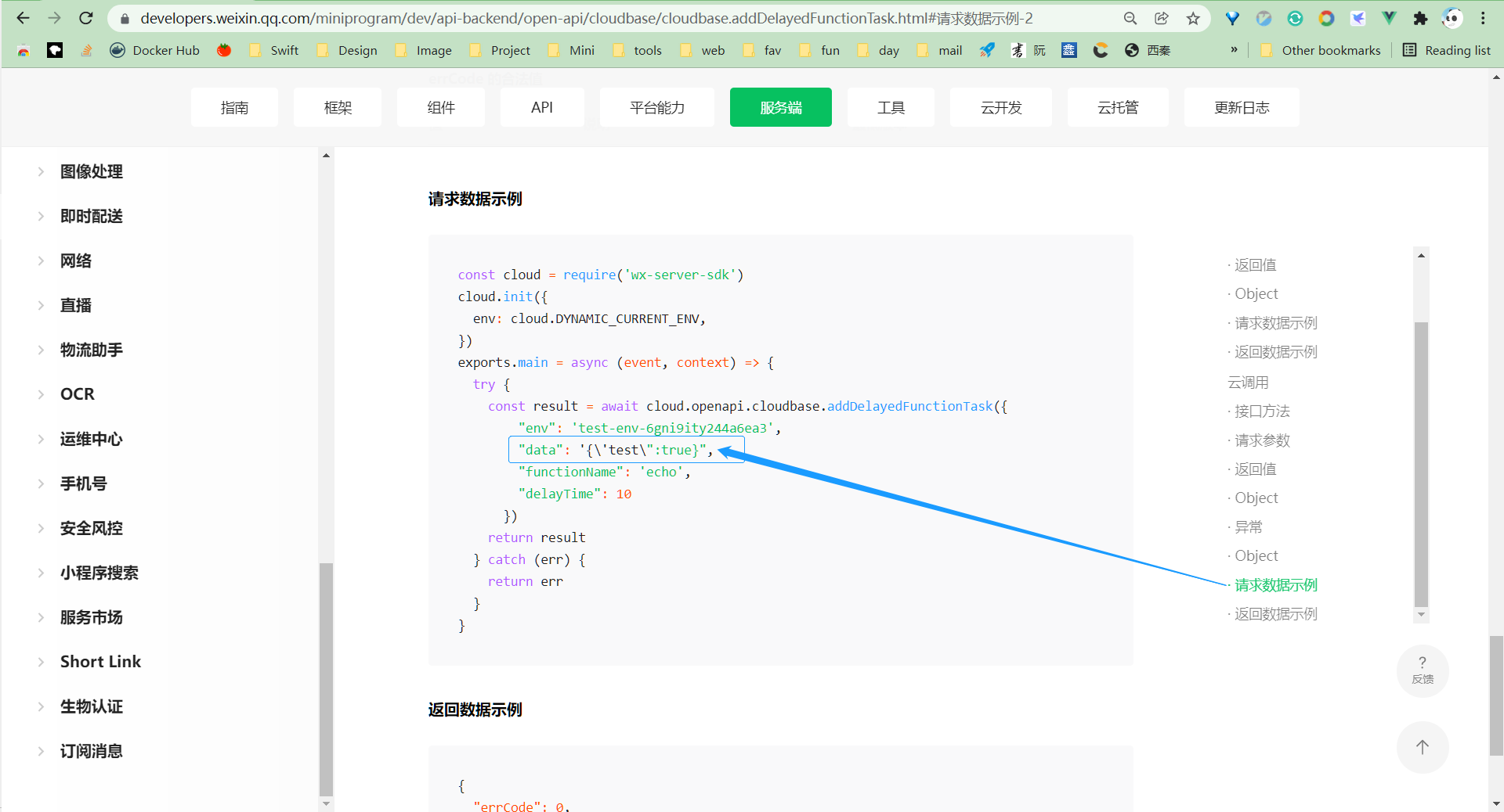 https://developers.weixin.qq.com/miniprogram/dev/api-backend/open-api/cloudbase/cloudbase.addDelayedFunctionTask.html#%E8%AF%B7%E6%B1%82%E6%95%B0%E6%8D%AE%E7%A4%BA%E4%BE%8B-2