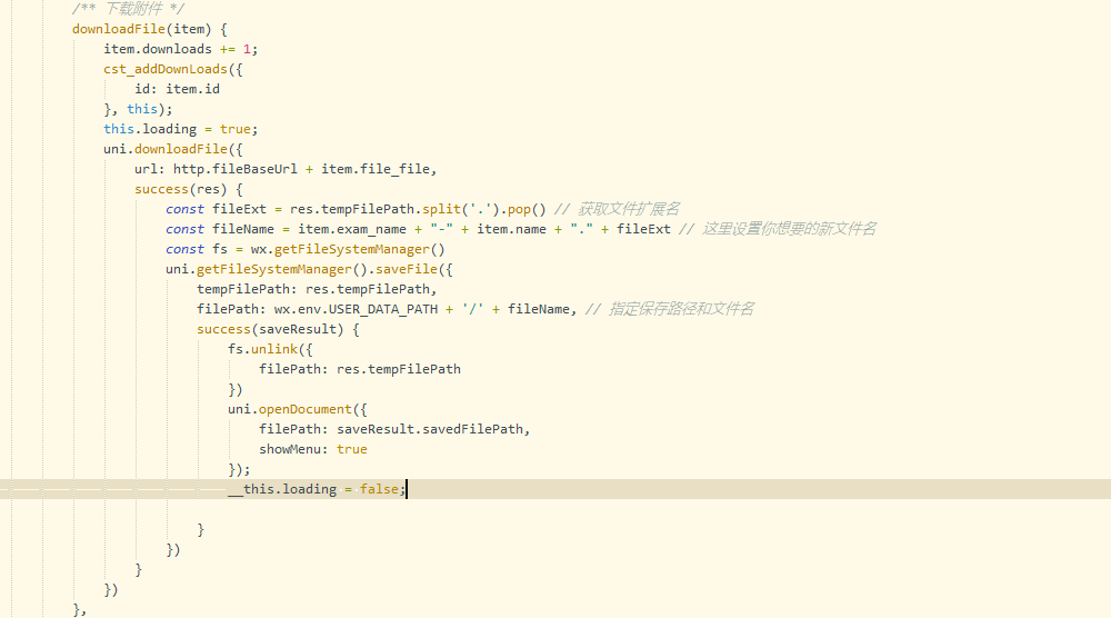 我也不怕丢人了,真给我逼急了。就是一个非常简单的下载到微信PDF的功能。我们从2022年初发现了这个问题,4年时间换了3波人用了各种方法都没办法解决。一开始的时候发现下载多了之后小程序的体积会变大。正常业务场景是,用户点下载,然后小程序弹出PDF预览页面(就跟你微信聊天打开PDF一个样子)。到了一定程度之后(内存变大,跟手机性能有关系),他就不会弹出PDF预览页面。我看微信开发文档说的是这个地方的内存到了一定程度会自动清理,但我们实测后发现并不是这样的。因为这个极难测试,我们还花钱专门买了3台500块钱左右的安卓机做测试,每次测试要重复操作下载几个小时才能复现测试一次。目前最新代码如下,实测之后ios端确实不会变大,但是新的问题是安卓端根本下载不了。跪求微信开发技术人员看到后指导操作,到底是哪里的问题?我要怎么做才能解决这个问题,目前因为这个问题导致的用户流失和资金损失我们几乎是承担不起的。