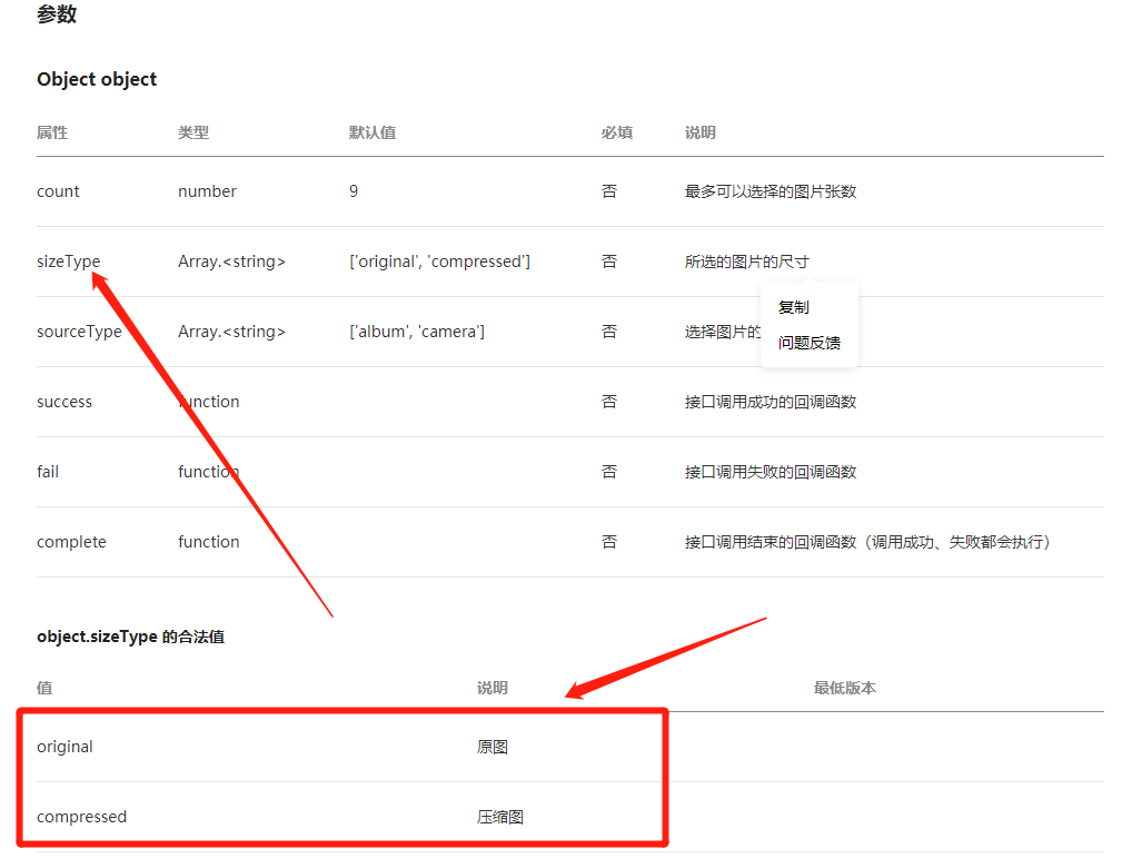 看这里链接:https://developers.weixin.qq.com/miniprogram/dev/api/media/image/wx.chooseImage.html