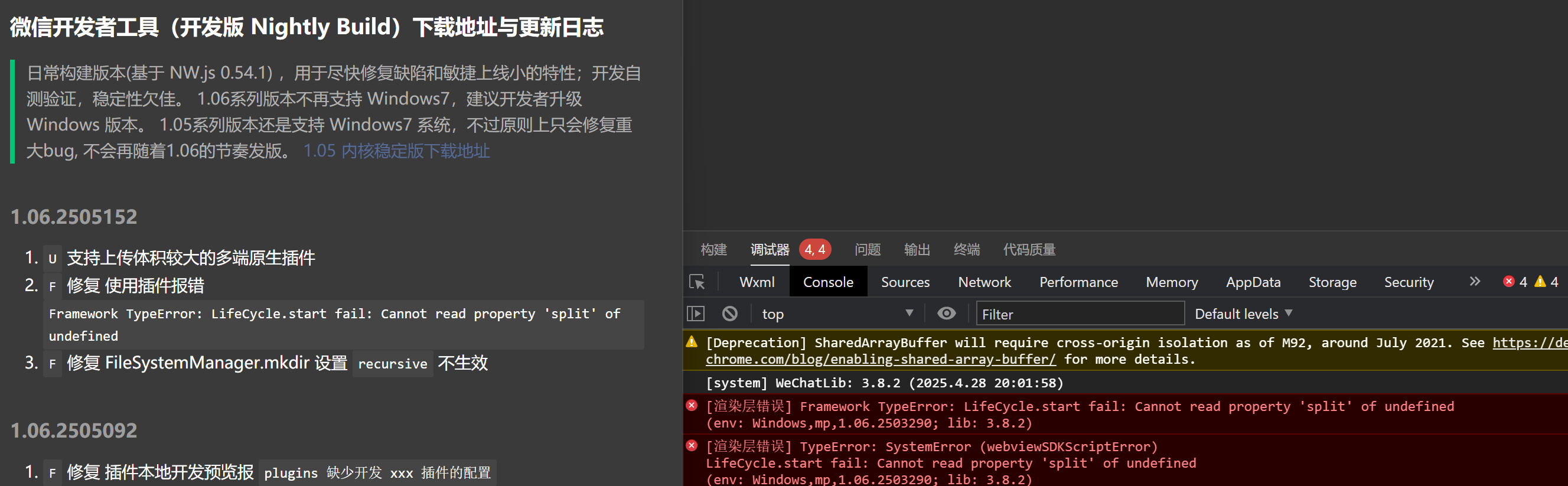 LifeCycle.start fail: Cannot read property 'split' of undefined(env: Windows,mp,1.06.2504212; lib: 3.8.1)