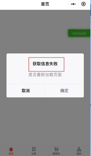 (1)页面提示“获取用户信息报错”、加载后,仍提示获取信息失败