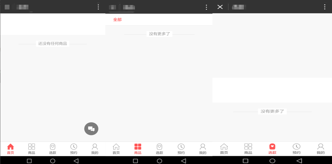 小程序仅有页面title、底部button, 但中间无具体运营内容。包括但不限于页面提示“无任何商品”“加载完了”或页面中间为空白。