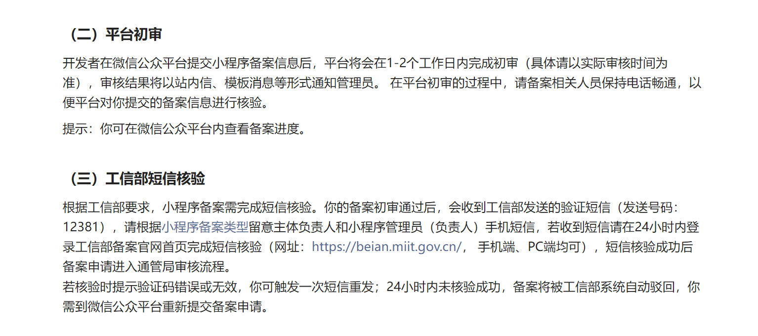 我的小程序管理员填写的手机号码,并没有收到短信(12381),就进入【管局审核中】,我想问的是,我的小程序备案现在处在什么状态?短信过段时间还是会过来的?还是不会发了?