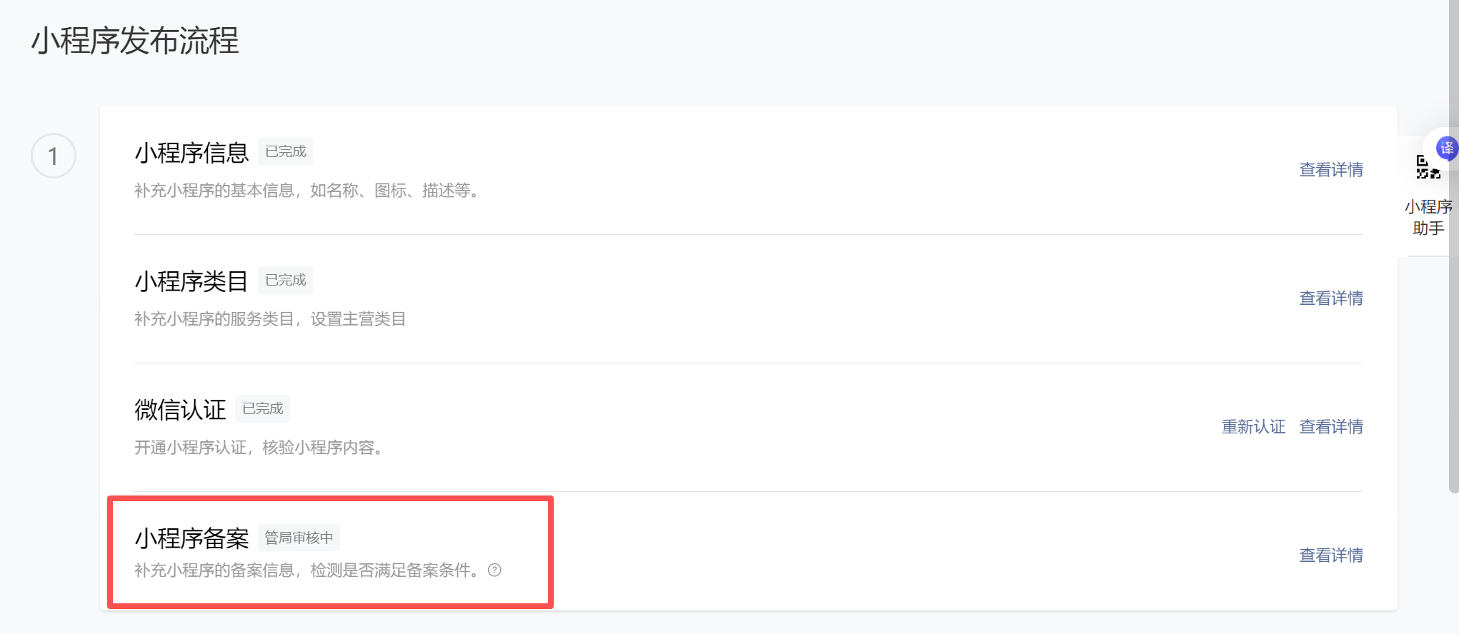 显示管局审核中就是对的,同一个主体之前备案过了,新增的小程序的可能会不验证短信