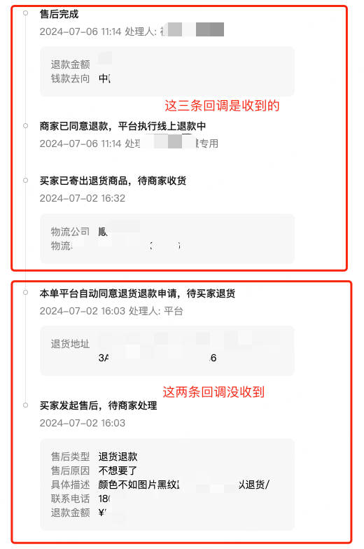 创建售后单回调没有给,帮忙查一下