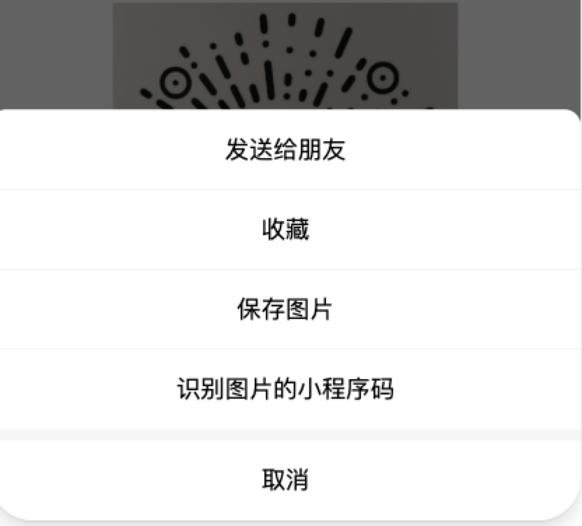 如图中所示,如何禁止长按图片弹出的“识别小程序菜单”中的“发送给朋友”功能。