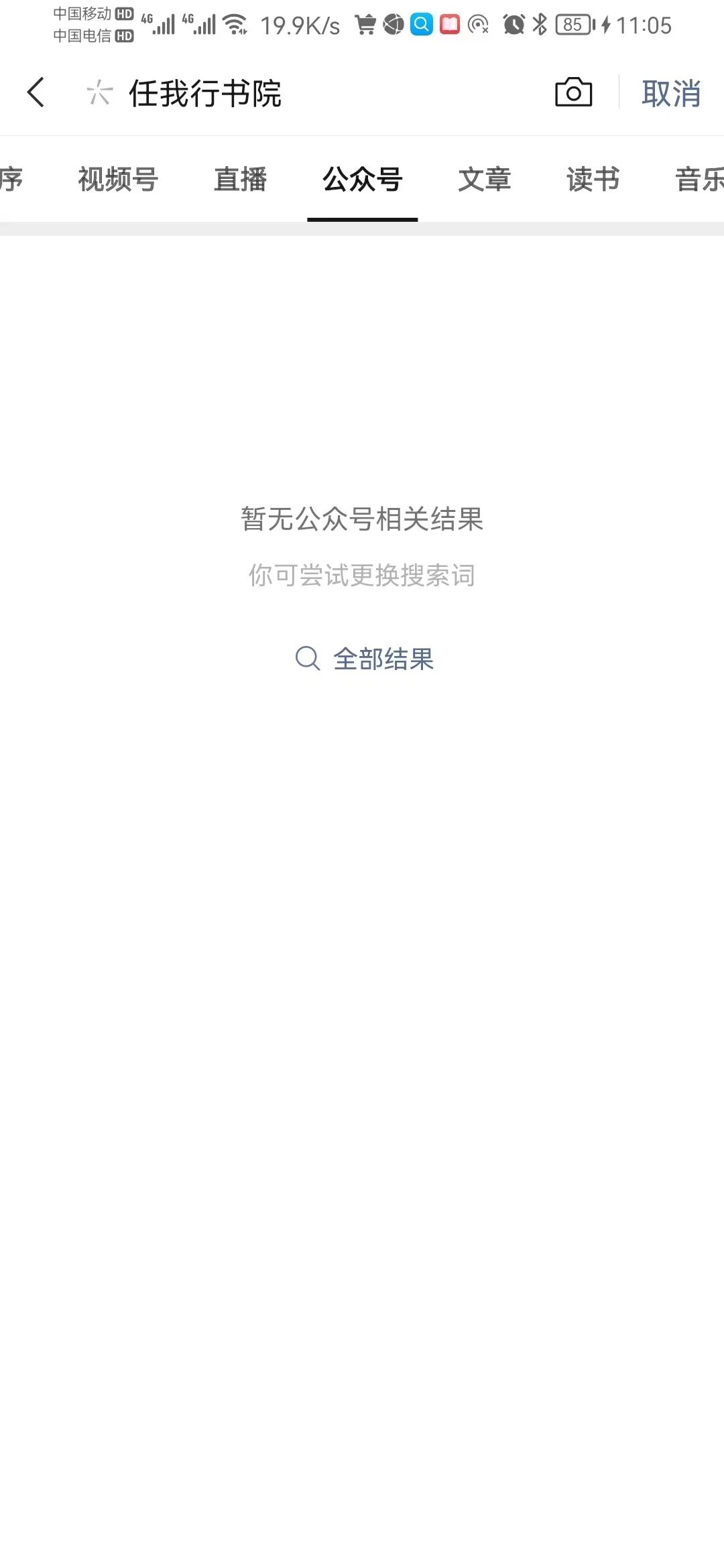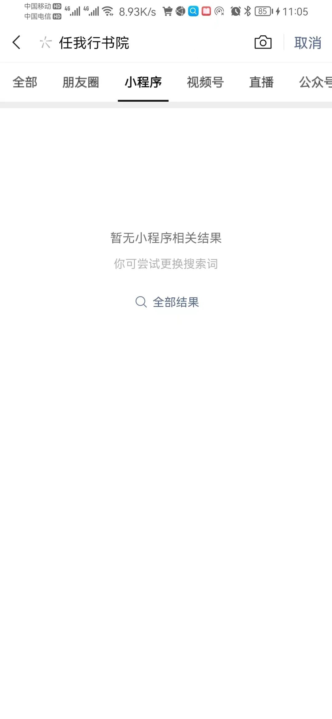 我们公司的同名小程序和公众号【任我行书院】无法在微信的搜索中获取到结果