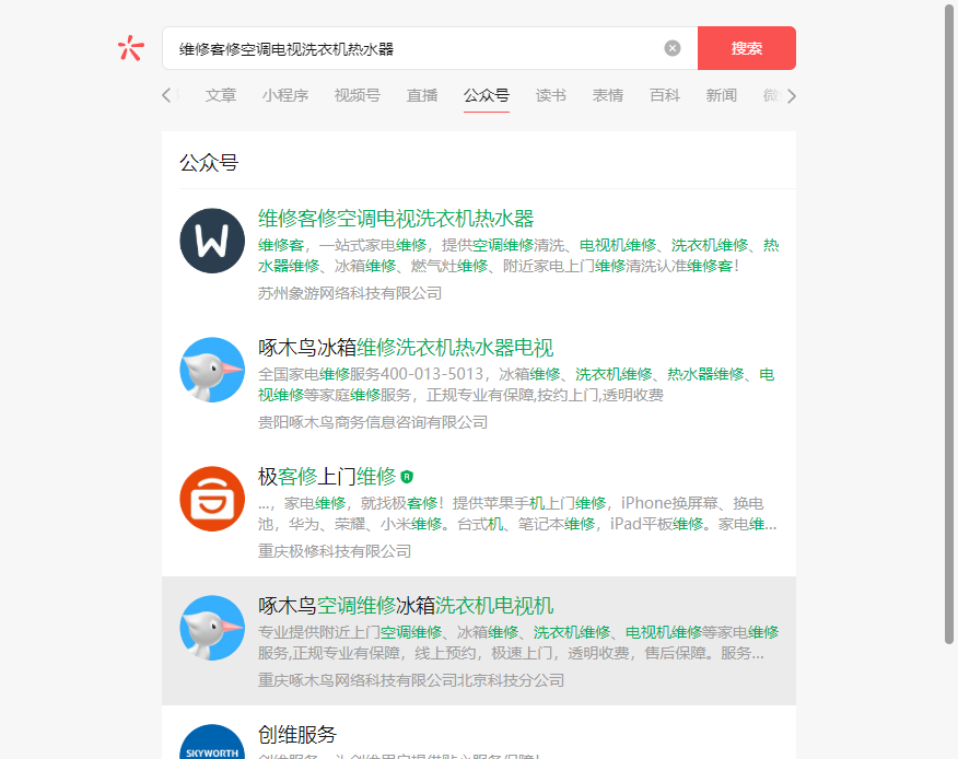公众号名称:维修修空调电视洗衣机热水器