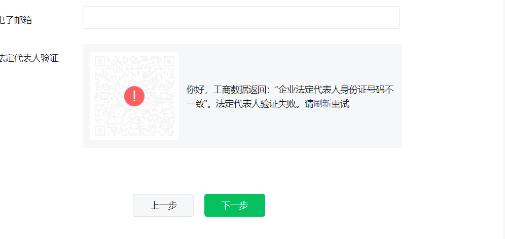 我是个体户所以填写的小程序认证资料都是确认无误的,一到法人扫码验证的时候就出现这样,营业执照也办了快半年了。工商局也去查询了身份信息都正常,麻烦客服这边给我处理一下一直卡在认证环节。