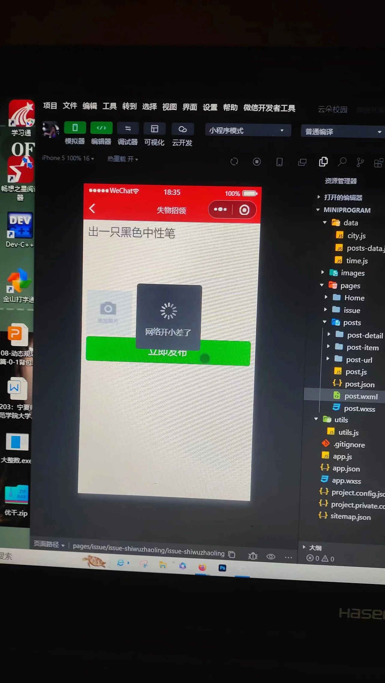 上线论坛类小程序,发布内容时一直出现网络开小差了提示,不知道出什么问题