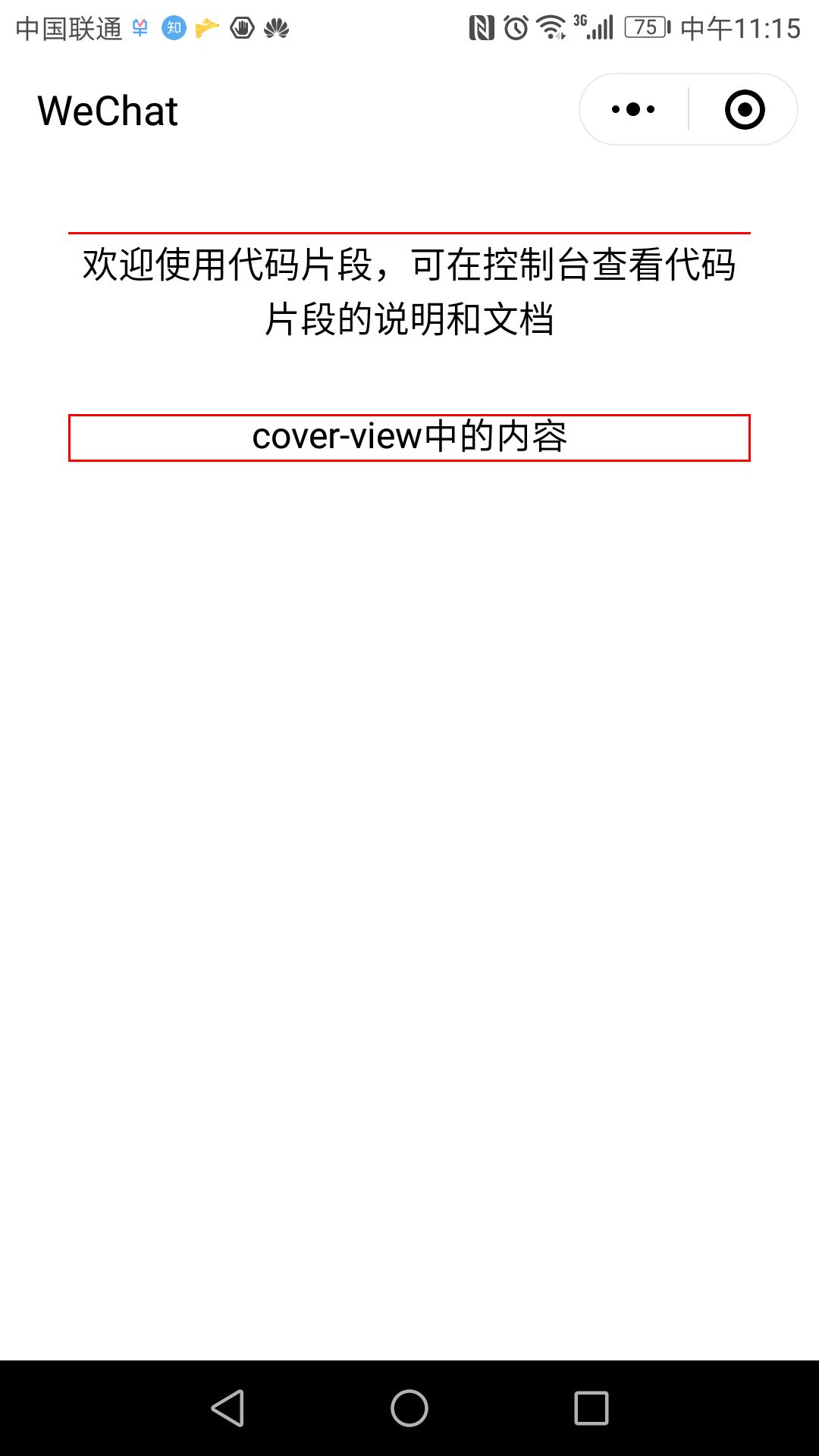 <view class="intro">欢迎使用代码片段,可在控制台查看代码片段的说明和文档</view><cover-view class="intro">cover-view中的内容</cover-view> |