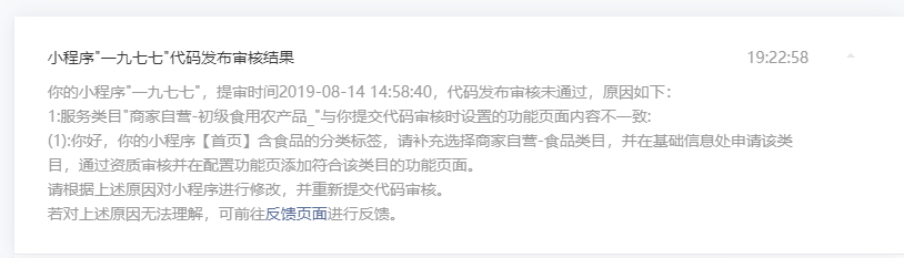 你好,经核实,贵方小程序【配料/蔬菜】版块无内容,请在小程序服务页面上架正式(非测试)内容或商品后重新提交代码审核。