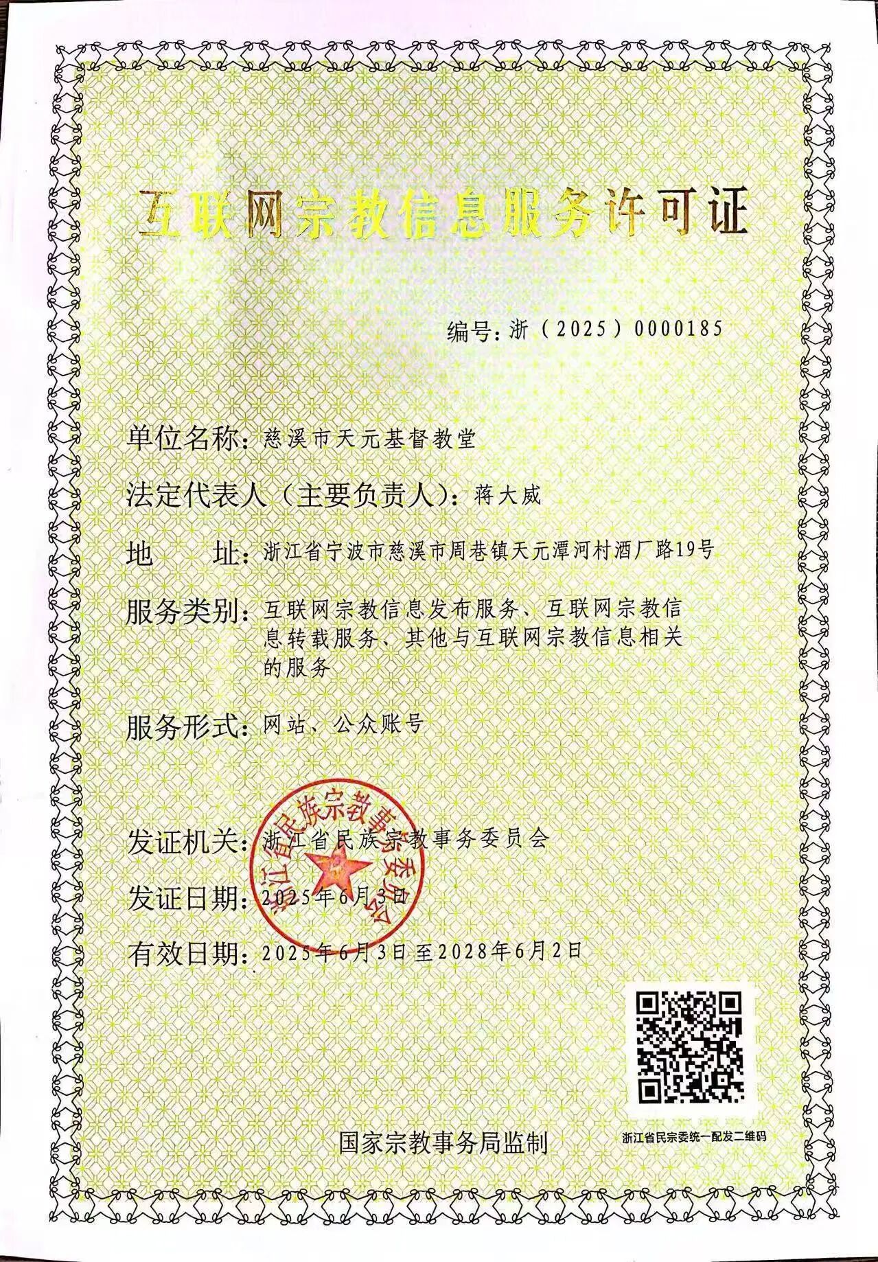 此外链为基督教,浙江省慈溪市天元基督教堂官网,已取得《互联网宗教服务信息许可证》并按要求规范网站内容,合法合规。请给予恢复,谢谢!