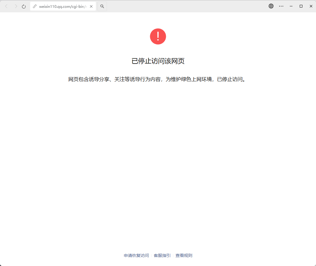 我们推测此次出现“已停止访问该网页”示可能是由于误判。 恳请微信安全团队重新审核我的域名,解除该提示,恢复网站在微信内的正常访问。