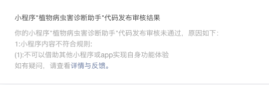 里面每个功能都是独立完成,不涉及任何的其他小程序和APP,甚至从未出现过其他小程序和APP的字眼,不清楚为什么因这个原因审核失败。