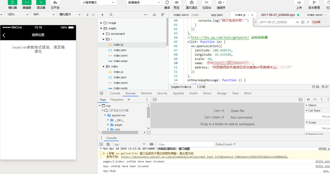 如图,我就改了个经纬度,开发者工具显示的就是上面错误,真机调试时手机上能显示门店地图,但是差了十万八千里,明明我填的我门店新标注的地址的经纬度,怎么跑去北京了?这个经纬度我是在坐标拾取器里查到的。