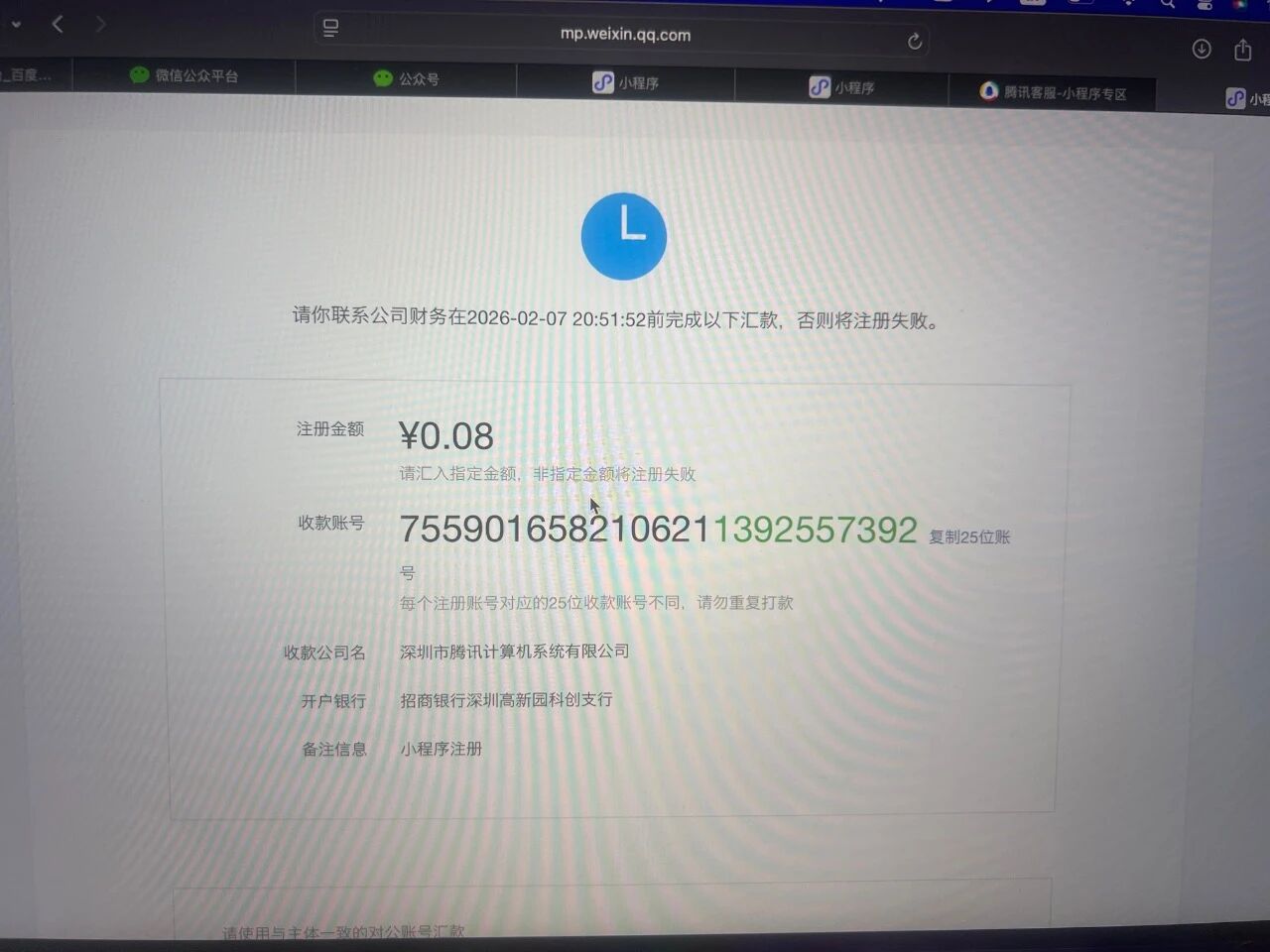 小程序认证时,小额打款认证时汇款账户写错了,无法打款成功怎么办?