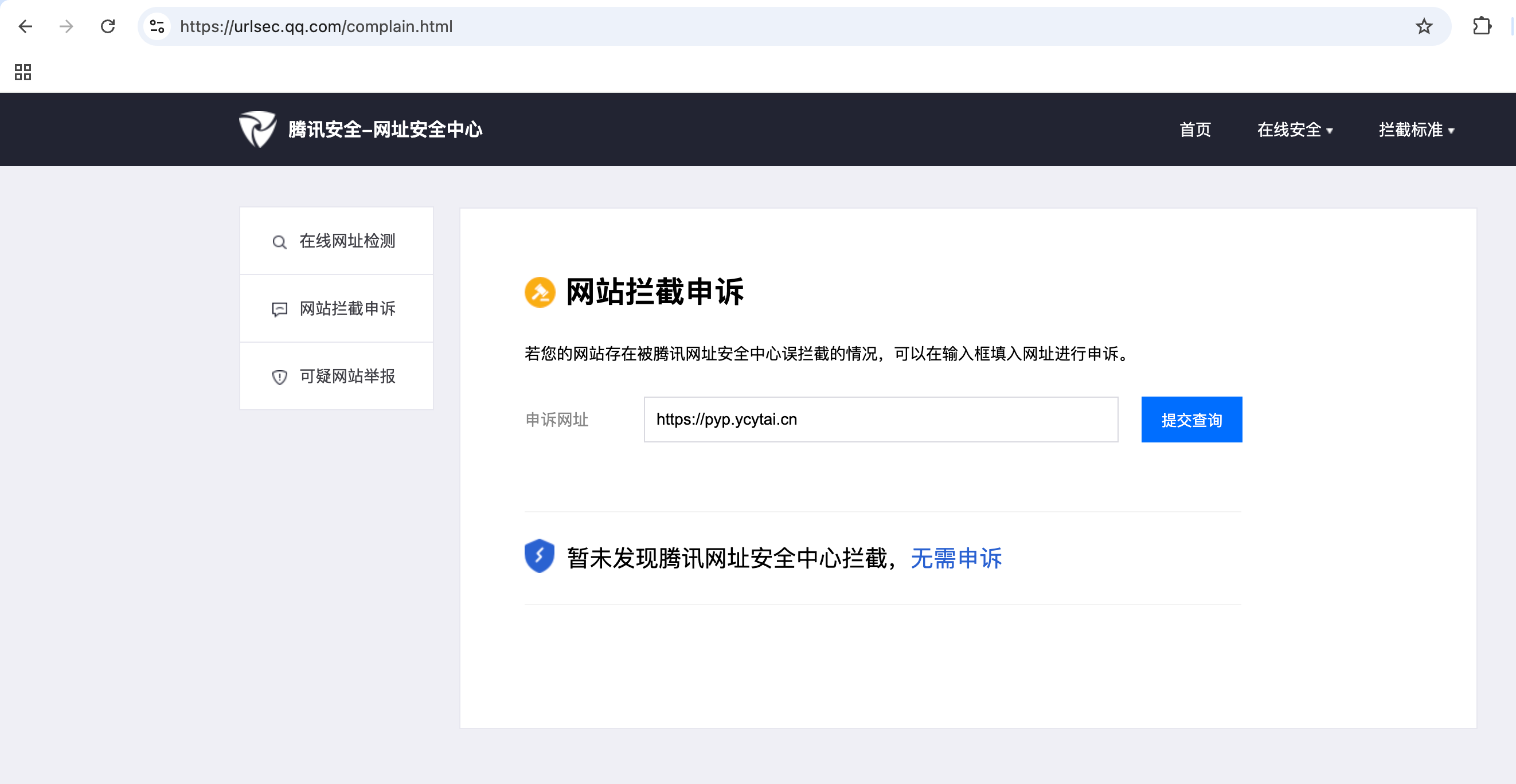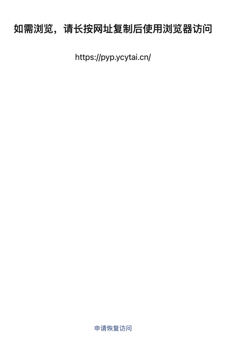 https://pyp.ycytai.cn/,域名并未违规,但是在微信内无法直接访问,需要能恢复直接访问