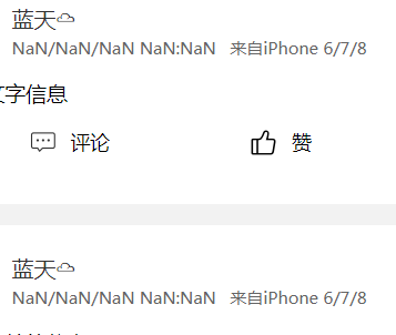 <view class="time">{{util.timeFormat(weibo.create_time)}}</view> // 模拟器得到的时间是NaN
