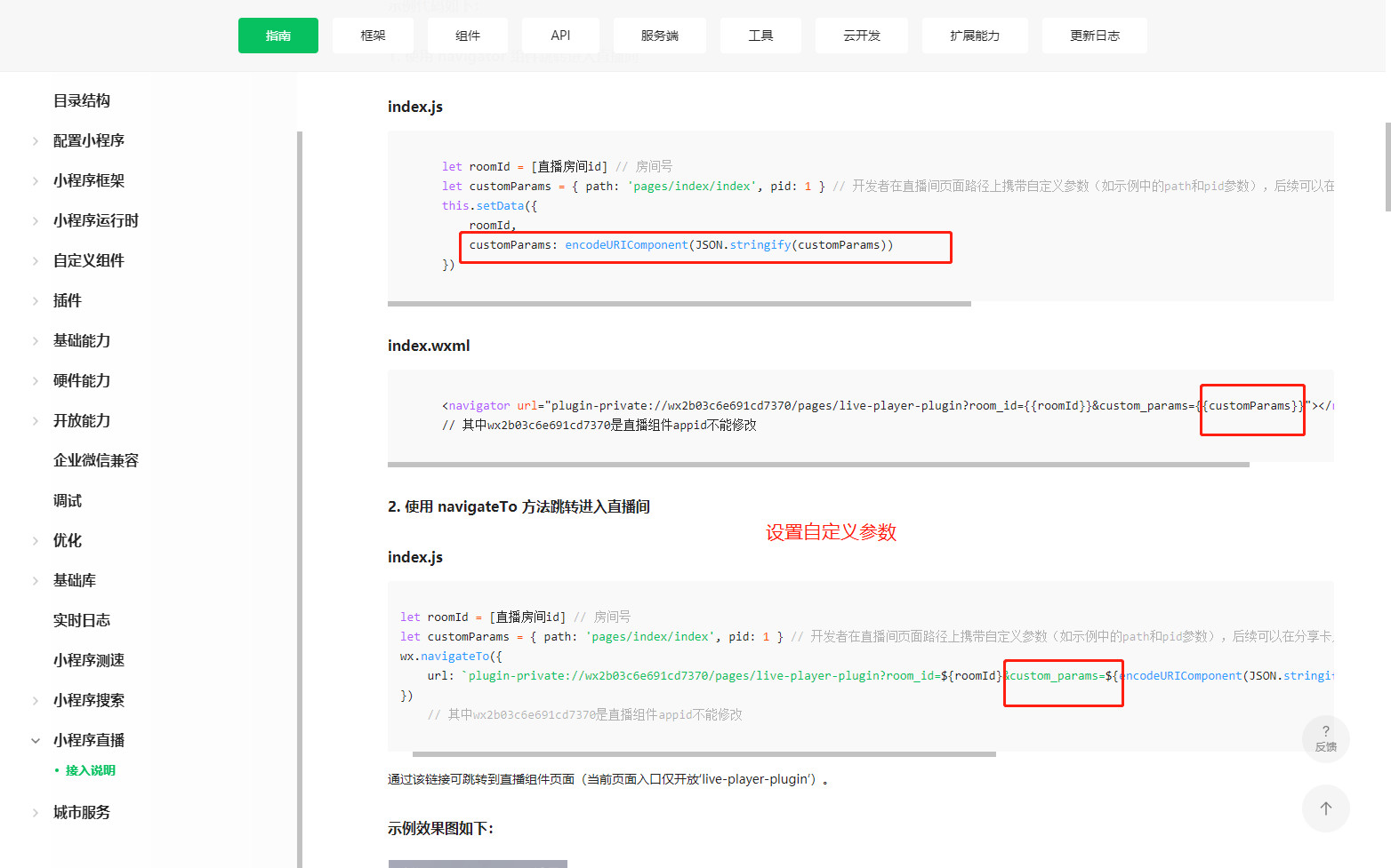 参考页面跳转至小程序直播插件代码 其中 custom_params 可以自定义参数