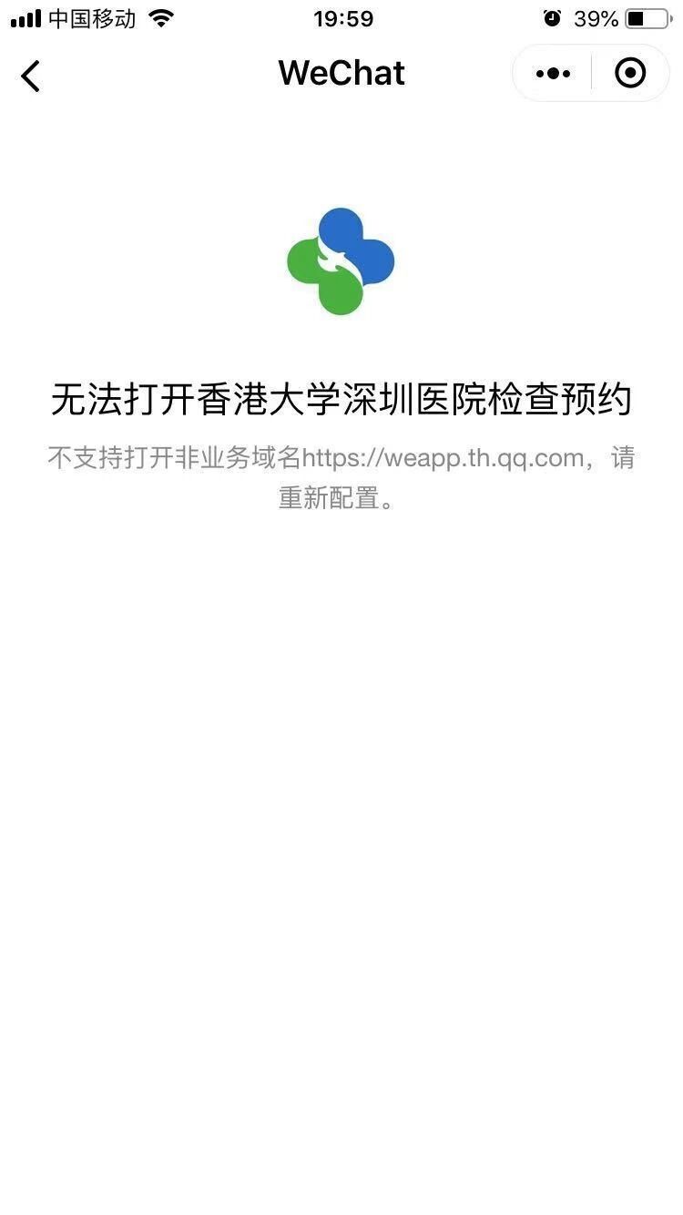 这是一个在线社保卡建档页面,出现了业务域名问题,导致小程序访问不到。