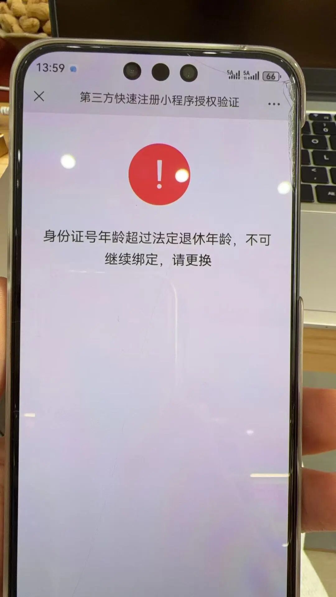 通过第三方申请小程序提示超过法定退休年龄了,如何处理