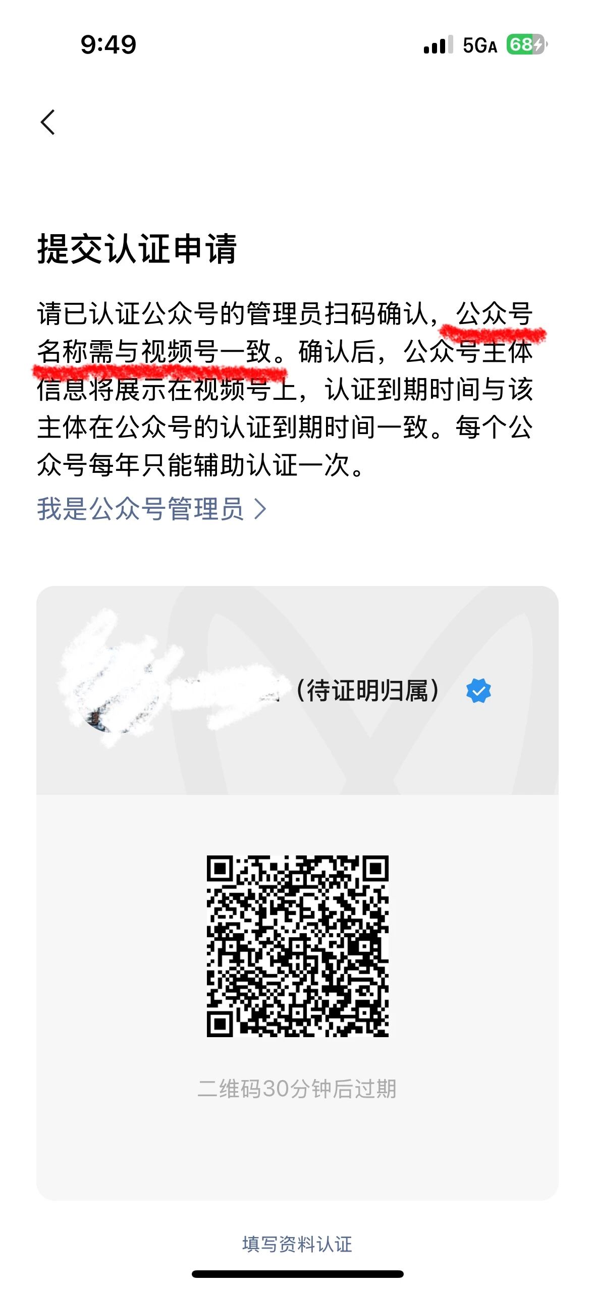 视频号名称认证需要归属到企业或机构,按照视频号的规则就申请并认证成功了一个公众号。