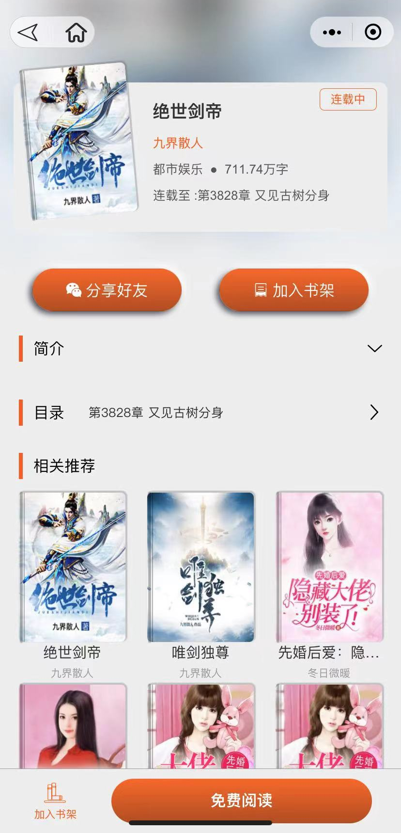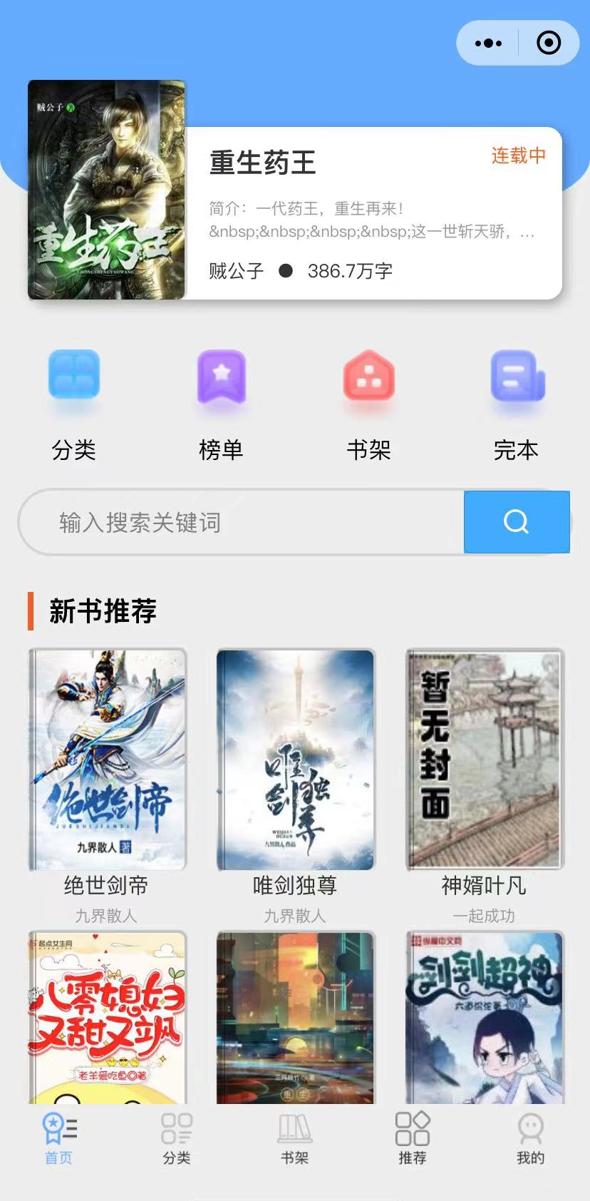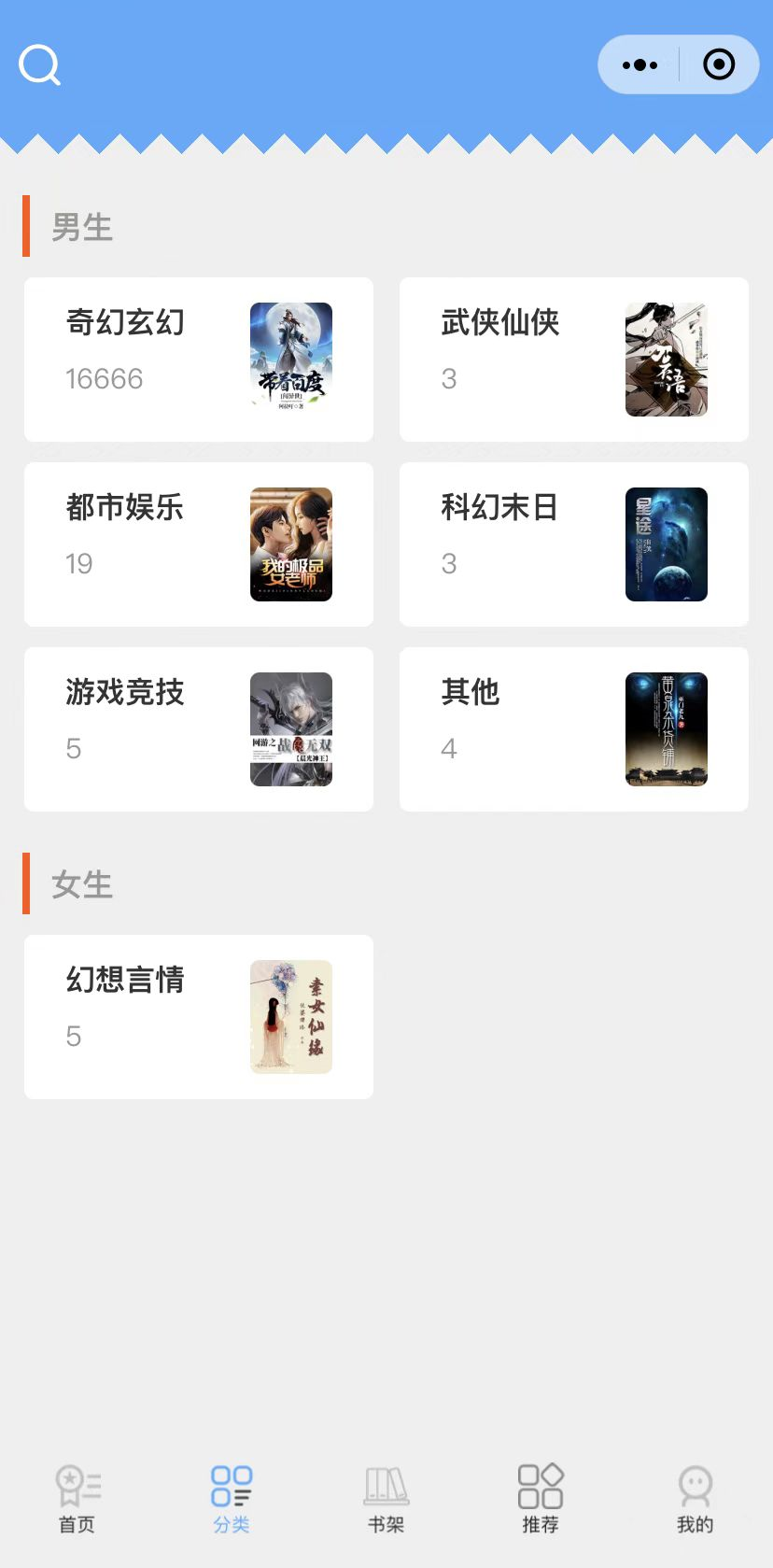 小程序中涉及提供电子小说在线阅读服务。需补充文娱-小说类目。