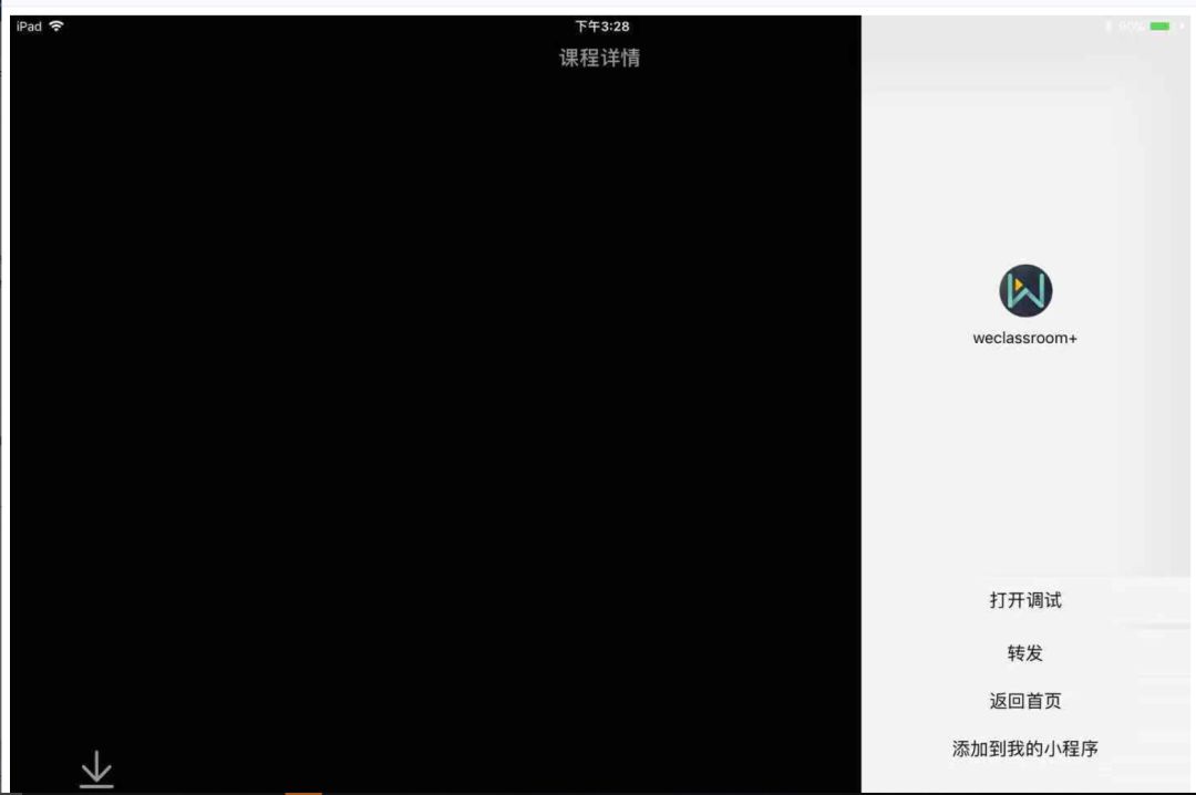 ipad端横屏进入教室,点击右上方…按钮后,小程序端黑屏