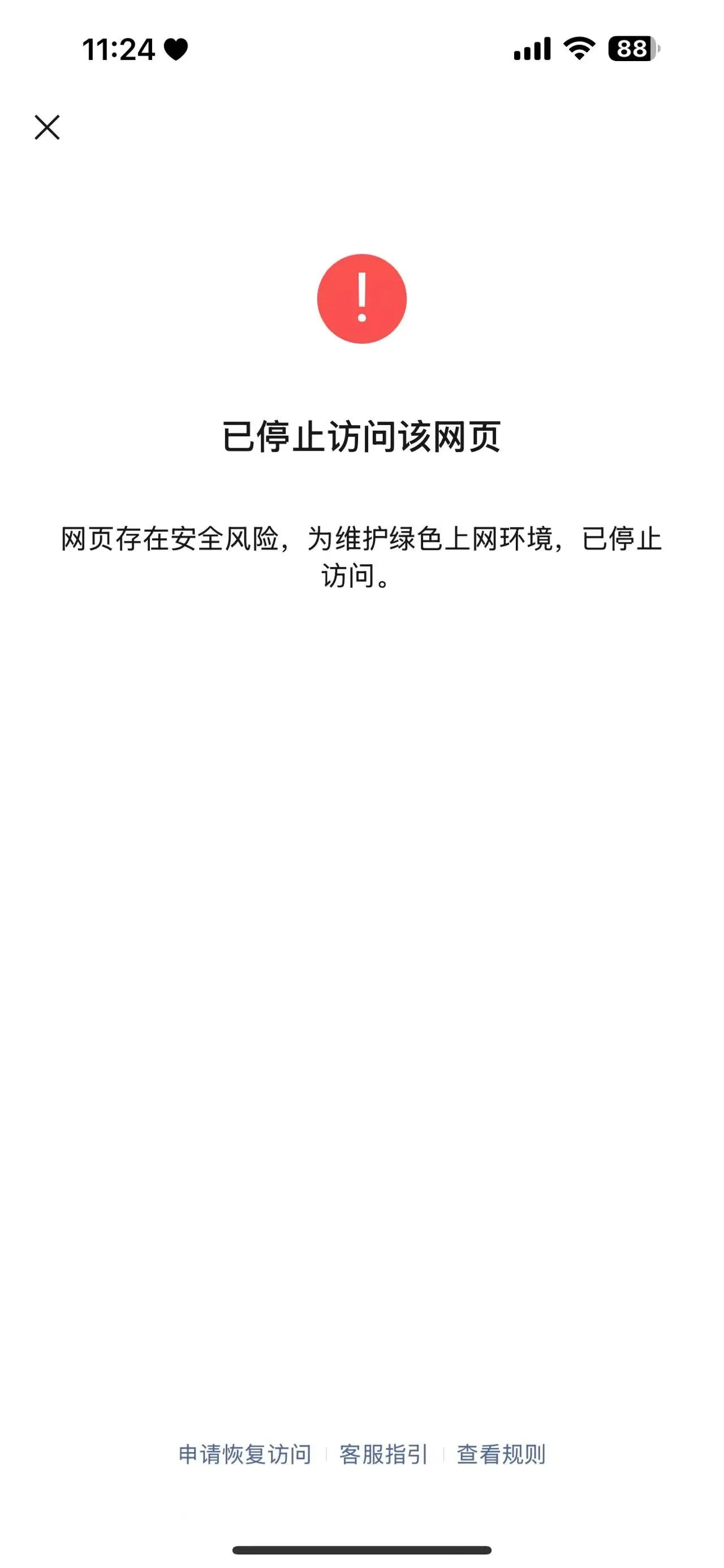 今天扫描二维码后,出现了“已停止访问该网页”的提示