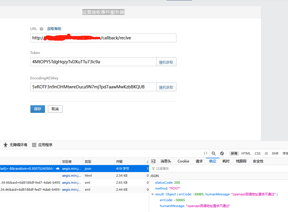 {"errCode":-30065,"humanMessage":"openapi回调地址请求不通过"}}