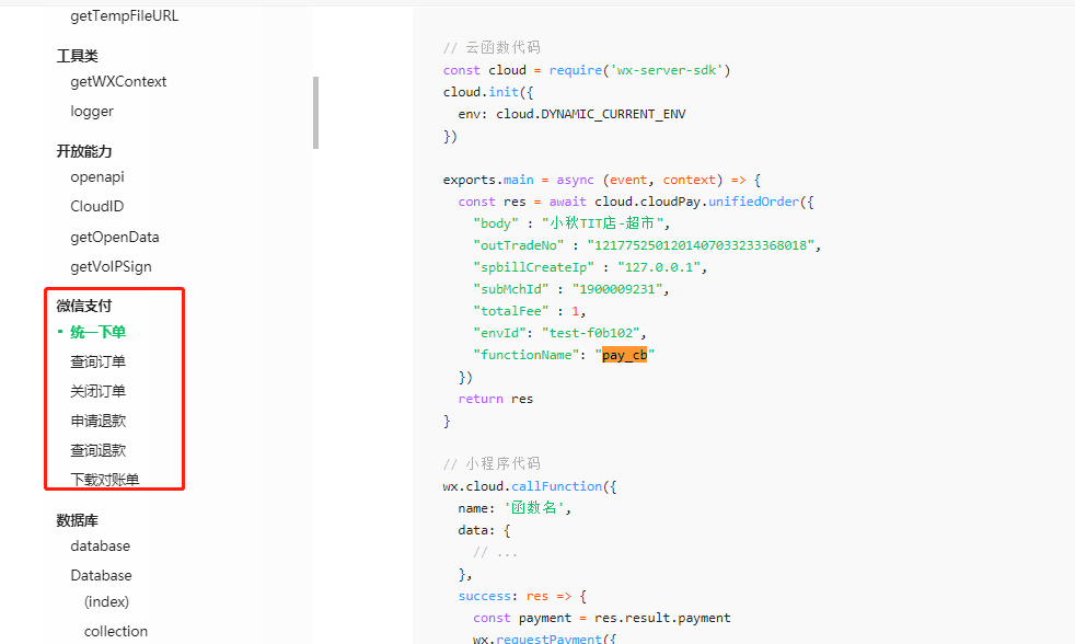 // pay_cb 云函数入口文件 const cloud = require('wx-server-sdk') cloud.init() const db = cloud.database() const _ = db.command exports.main = async (event, context) => { await db.collection('cloudPay').doc(event.outTradeNo).set({ data:event }) return { errcode:0, errmsg:'SUCCESS' } }