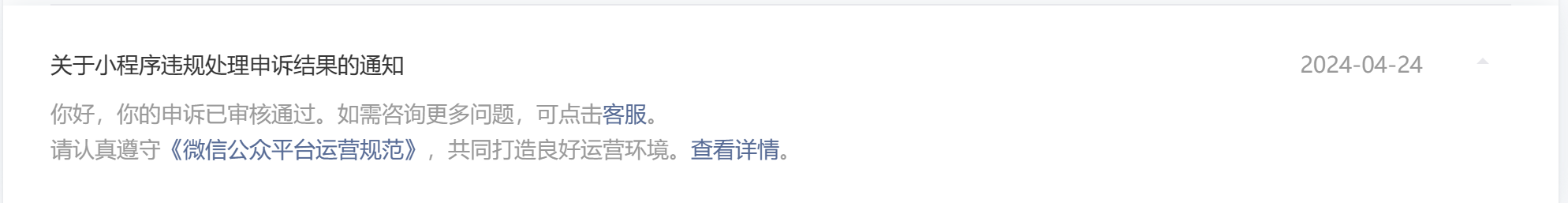 感谢反馈,申诉结果已通过站内信下发,可在mp后台登录查看详情根据站内信指引完成整改后重新发起申诉即可。
