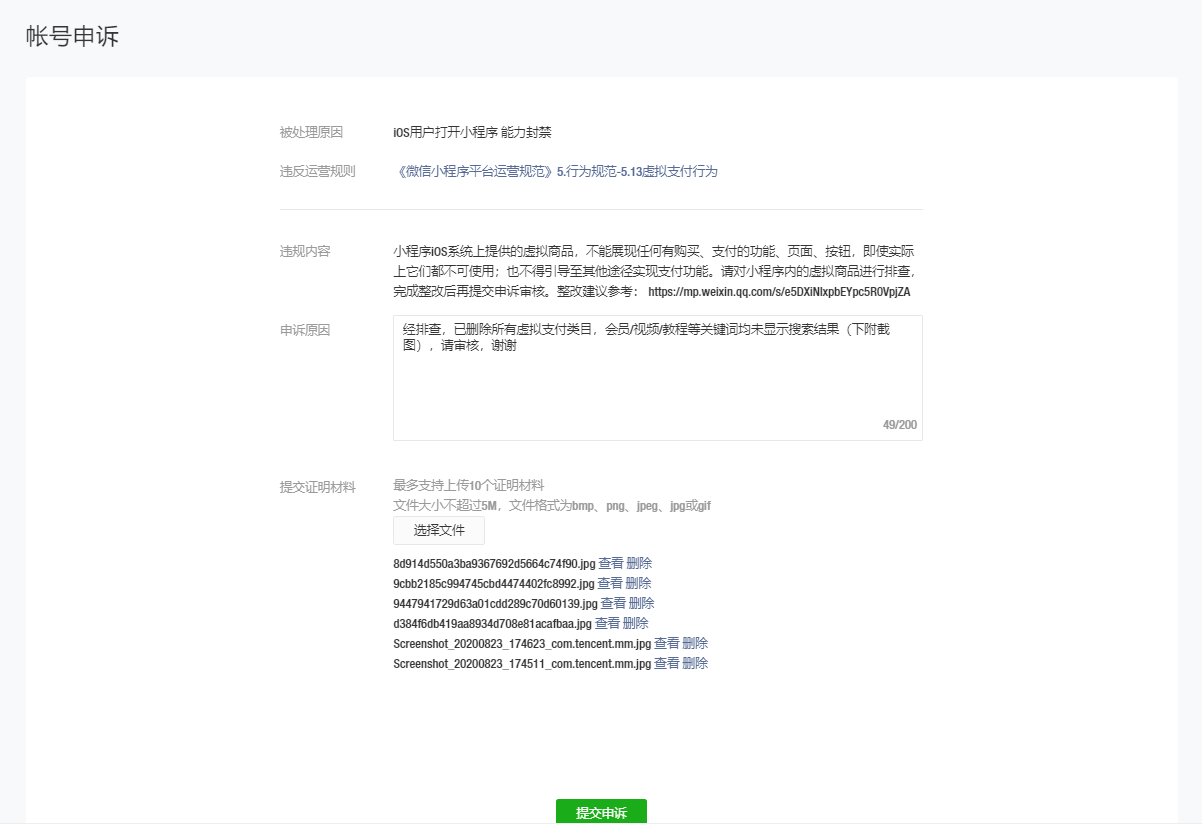 iOS因虚拟支付被封禁,申诉多次未出现审核状态,申诉入口一直在,不知道是不是提交成功了?