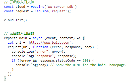 刚学习云开发,看到API上说可以用node发起网络请求,然后自己尝试了下,没有成功,找了半天也没找到问题所在,求大佬指点下