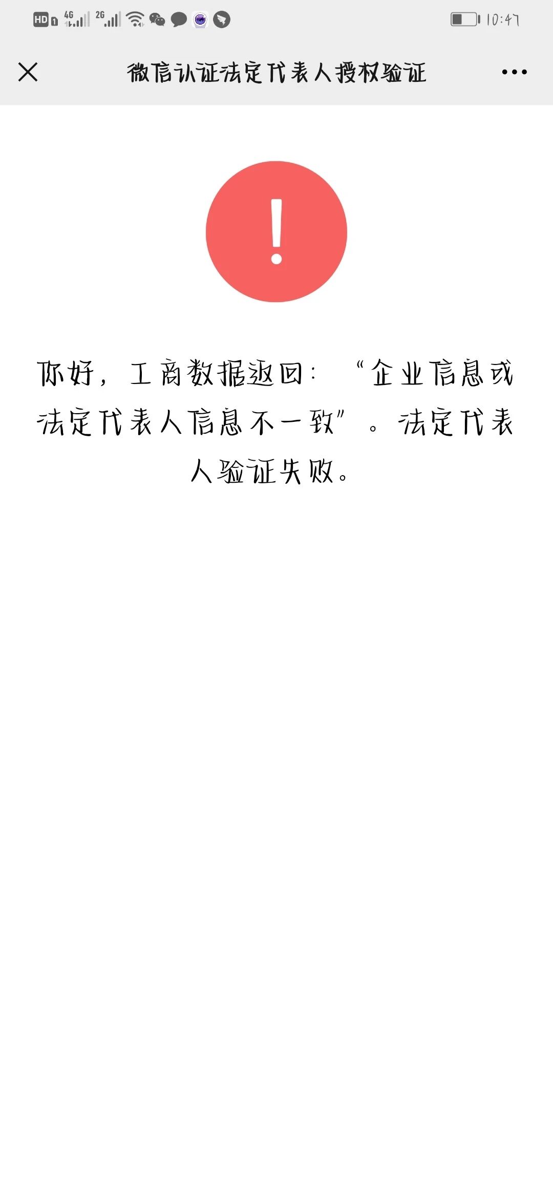 你好,核查发现填写的主体名称与营业执照上的主体名称不一致,故法人验证失败。请严格按照营业执照的主体名称填写。