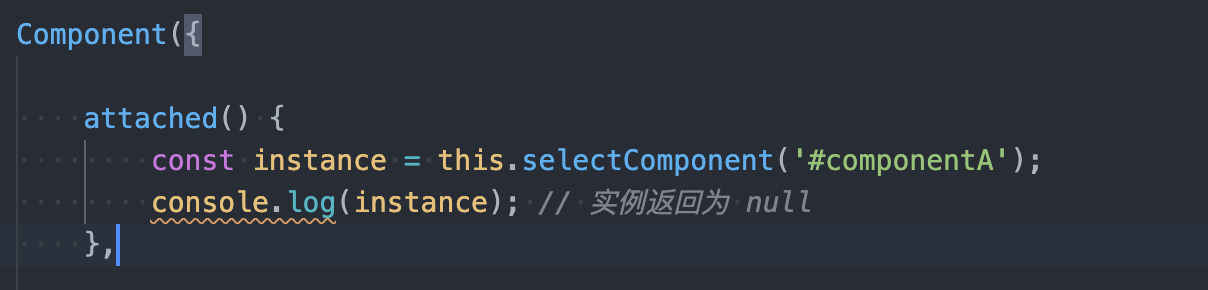 并且在JS中通过selectComponent获取组件实例,此时获取不到A组件实例