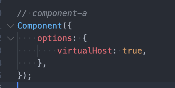 在组件A中设置virtualHost: true属性,将节点虚拟化