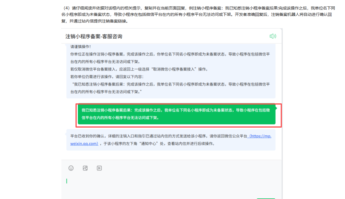 我们收到了备案变更通知,想把备案信息改成和主体信息一样的公司,想保持一致,但是后台提示我要先注销小程序备案,但是注销备案的话就会导致无法访问,影响小程序的正常使用,那我们现在有什么办法在不影响小程序正常使用的前提下,可以更改备案主体呢?着急 需要人工客服