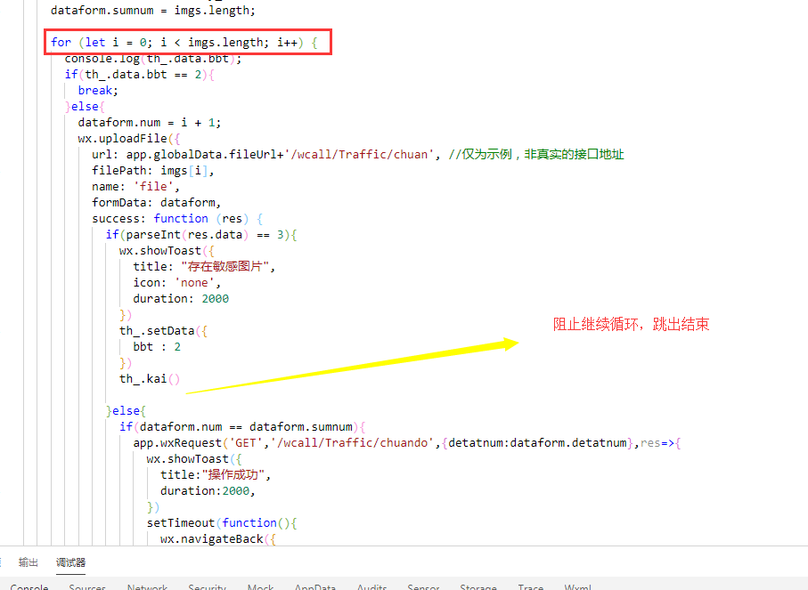 开发者工具里,.js文件中如何跳出for循环