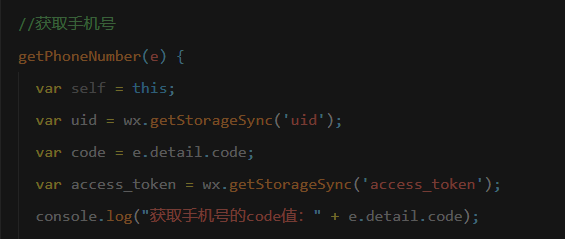 这里重新解释一下,登录获取的code,和获取手机号的code,两个是不一样的。