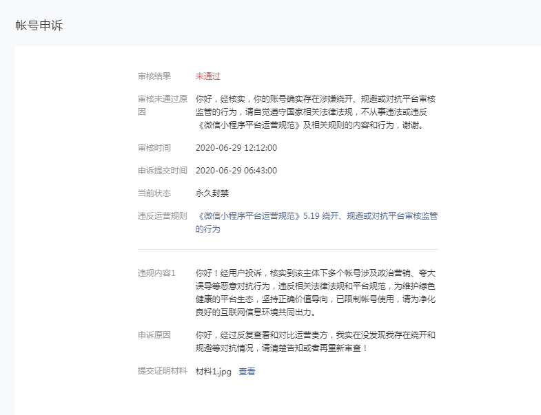 感谢反馈,申诉结果已通过站内信下发,可在mp后台登录查看详情。